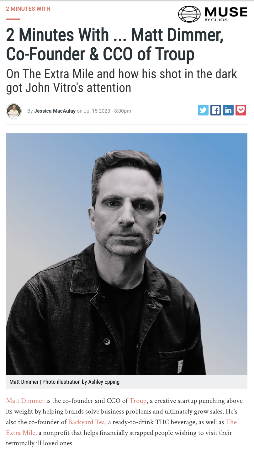 Over the last few decades I've worked all over the country in agencies from 5 - 1500 people and on almost every type of brand. I've art directed and created local pro-bono campaigns & shot multi million dollar commercials all over the world.